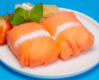 A special edition Nutella strawberry MLD pocket. Created with a cream filling accompanied by freshly cut strawberries, strawberry purée, and Nutella. All wrapped in a delicate strawberry-flavored MLD crêpe with dairy fresh whipped cream. Comes with a side of sliced strawberries. Non-dairy whipped cream is available.
